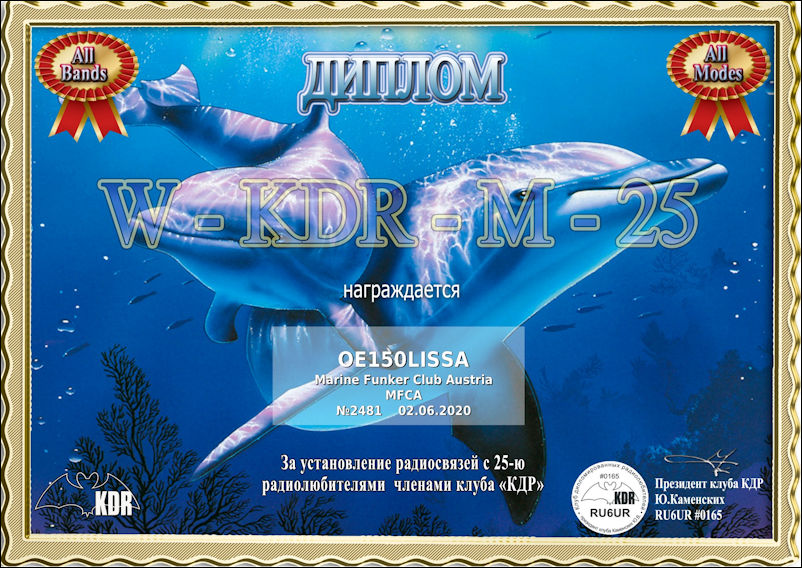 Um Diplome der W-KDR-M-25-Serie zu erhalten, müssen 25 QSOs mit Mitgliedern des KDR Clubs durchgeführt werden.